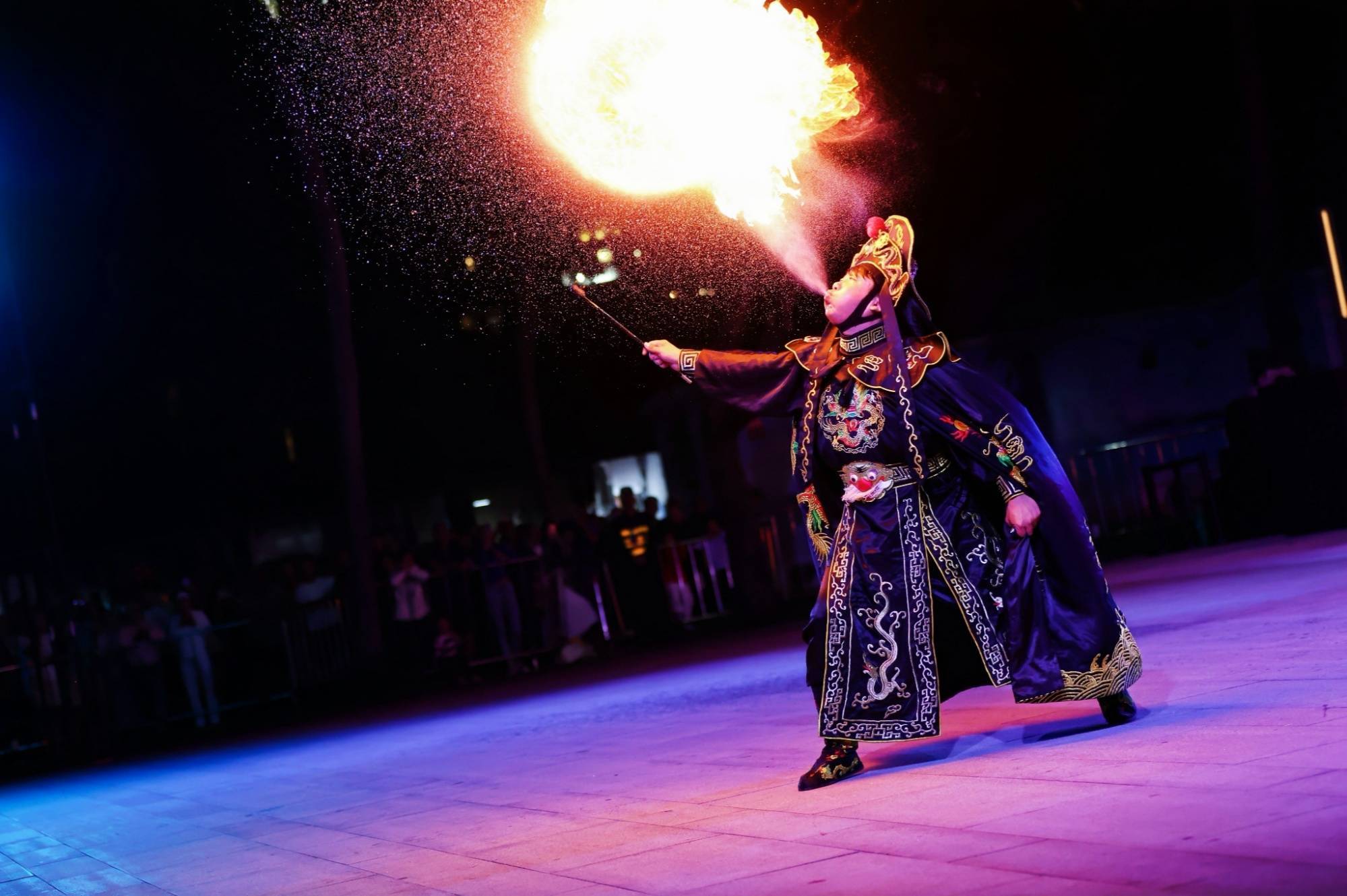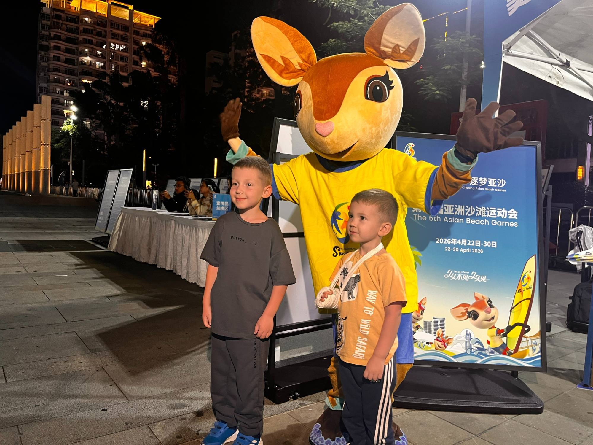 亚沙会元素的加入也成为当晚现场一大亮点。以海南坡鹿为原型的吉祥物 “亚亚” 灵动亮相,时而与小朋友击掌互动,时而摆出运动造型供游客合影,赢得市民游客的广泛喜爱。旁边的亚沙会特许商品展区内,茶杯、玩偶、冰箱贴、笔记本、徽章等特许商品琳琅满目,整齐摆放在主题展台上,也吸引了不少观众驻足了解。“‘亚亚’的设计太可爱了,买个玩偶带回去做纪念,也算是提前为亚沙会加油!” 三亚市民李女士拿着刚选购的吉祥物玩偶说。