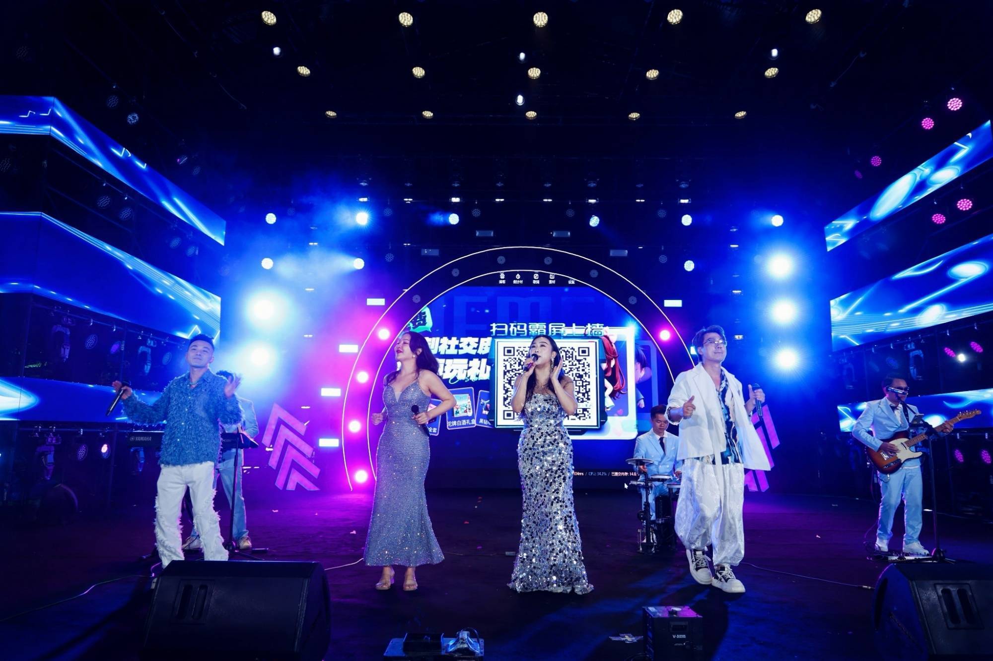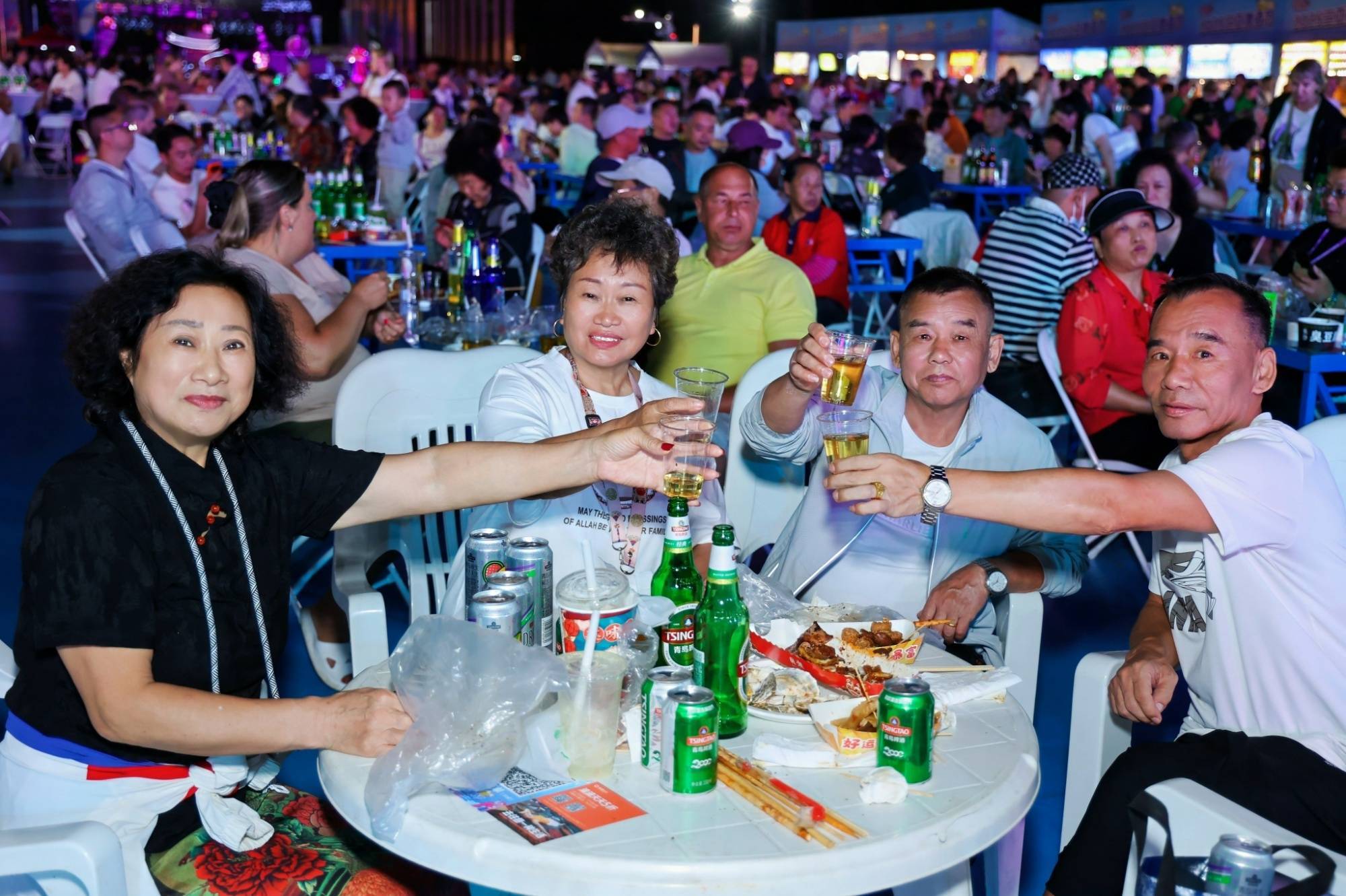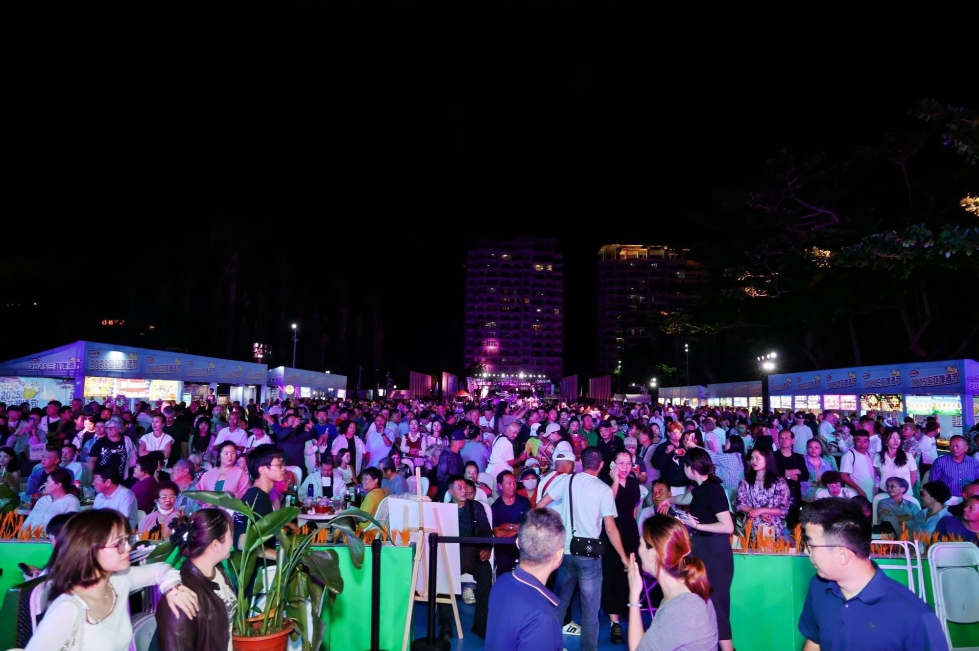 晚上8点,活动现场气氛热烈,知名乐队演唱、DJ 电音派对、海岛风情表演等精彩节目轮番上演,不时还穿插酒王争霸赛、摇一摇抽奖等互动环节,海风与酒香交织,电音旋律点燃全场。