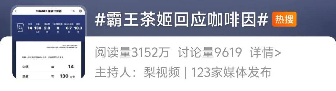 “霸王茶姬咖啡因”“霸王茶姬大跌”等话题接连冲上热搜,其中#霸王茶姬大跌#阅读量超3582.6万,讨论量达1.4万。值得注意的是,这并非该品牌首次陷入类似争议——2024年5月,就有消费者反映饮用“万里木兰”后心慌不适,当时“一杯万里木兰相当于5罐红牛”的话题已引发过关注,凸显咖啡因含量争议的长期存在。