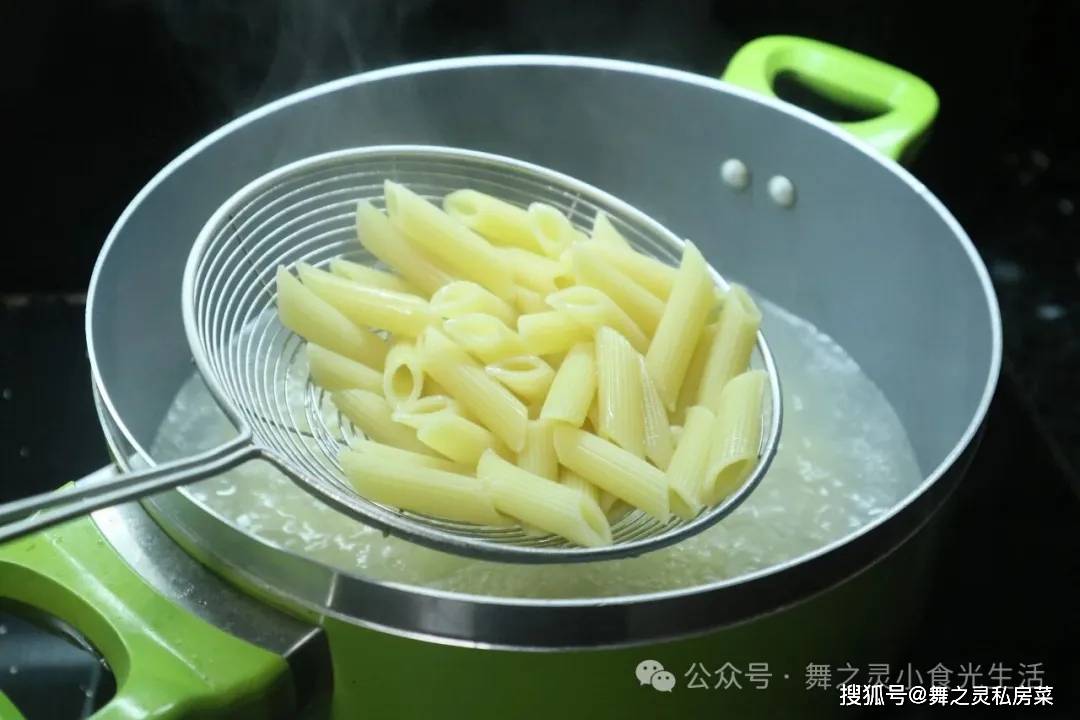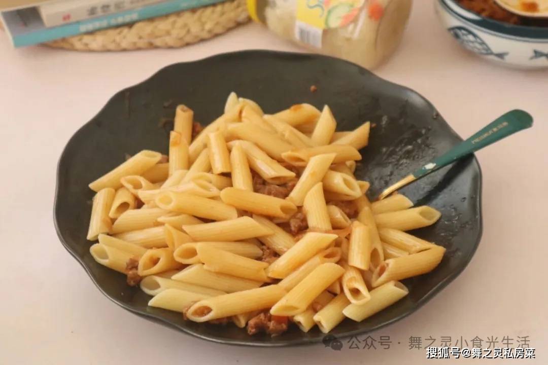 第四步:肉酱熬好可以大火收汁,接下来就是煮空心意面了,水开加入盐和油少许,再放入意面,烧开加一次冷水,继续烧,大概9分钟左右熟透捞出。