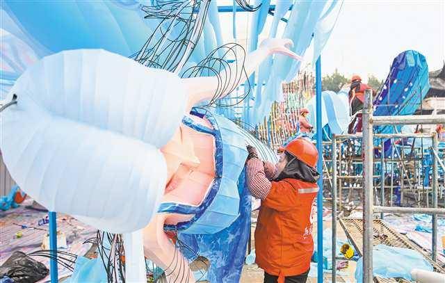 1月5日,2026年重庆市新春灯会——“禧欢霓”园博园大型水上灯会的部分大型灯组已初现轮廓。该灯会以“灯海映山城”为主题,是西部最大的水上灯会,将于本月底正式亮灯。