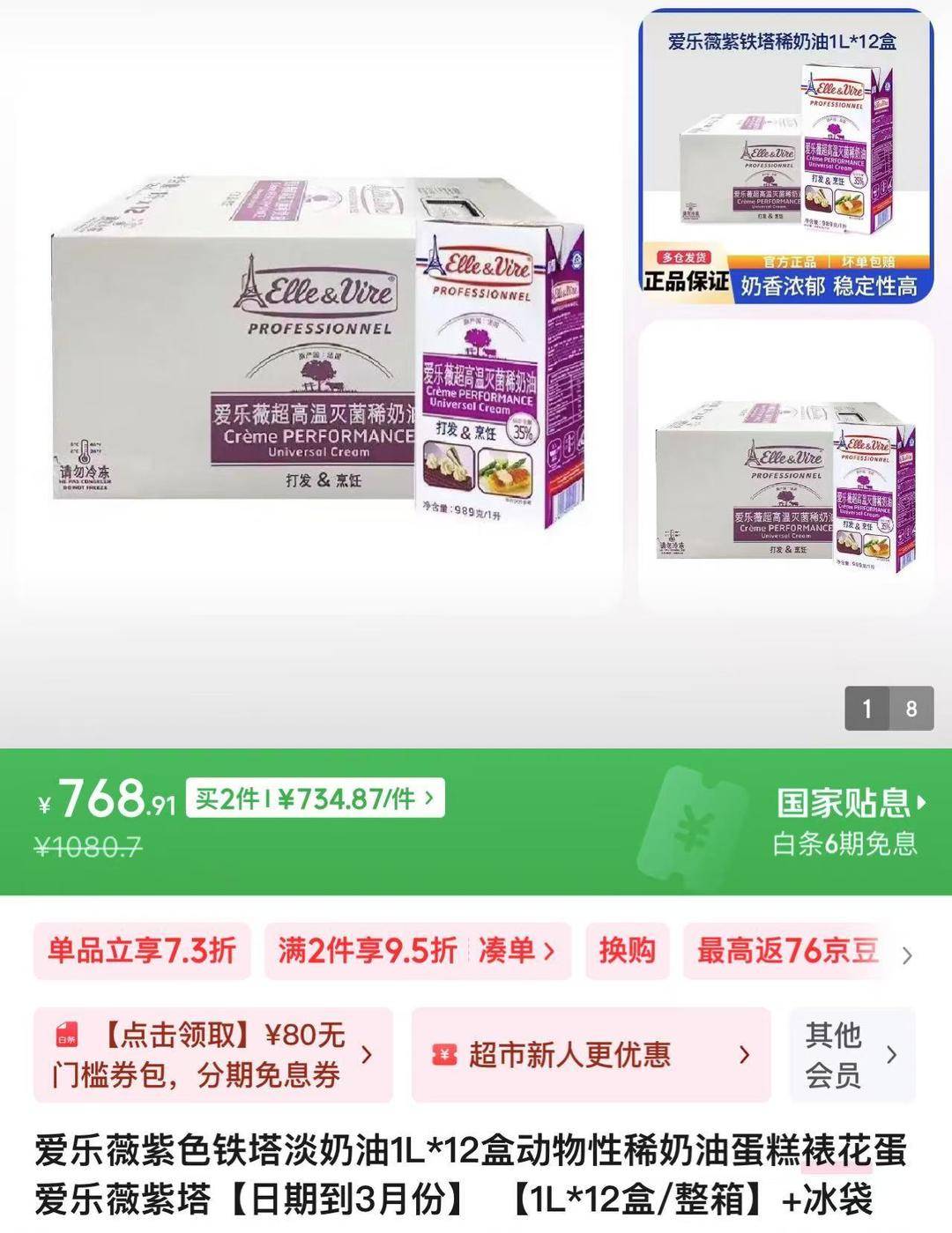新西兰产的安佳价格较低。购物平台截图