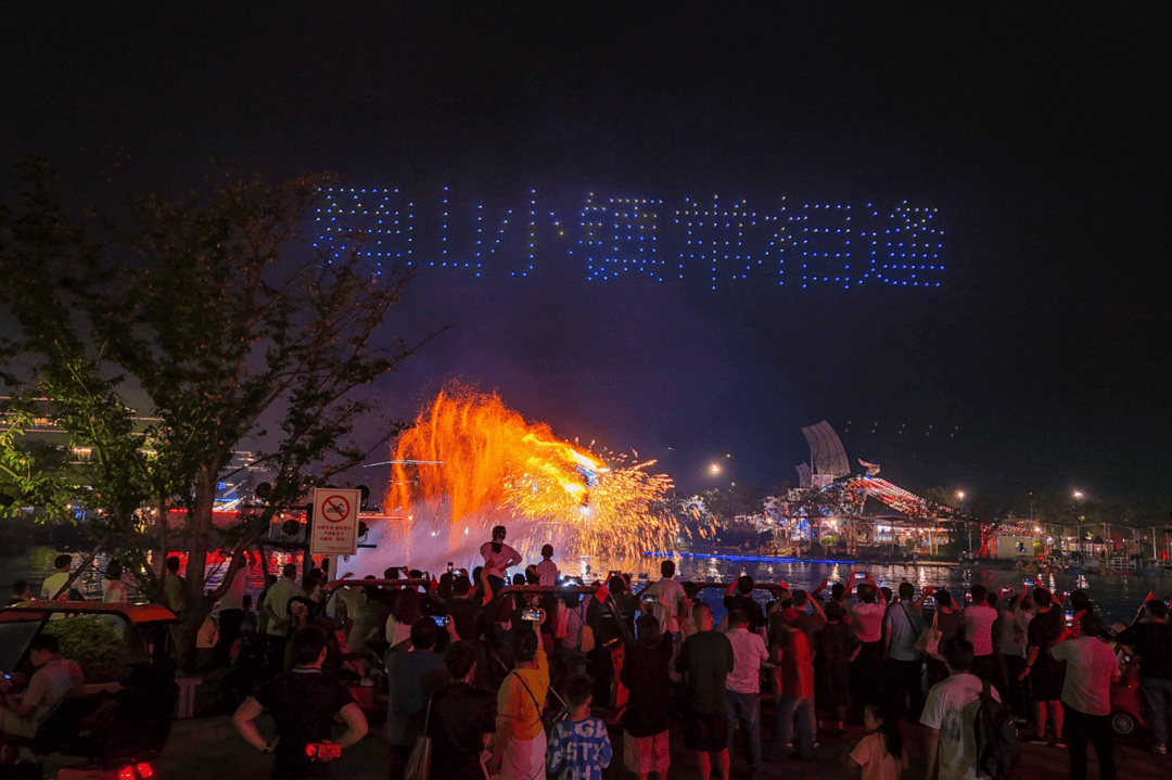 缤纷演艺轮番上演:国风 NPC 巡游翩跹而至,舞蹈串烧点燃现场氛围,非遗打铁花震撼绽放,传统与时尚碰撞,绘就视觉画卷。
