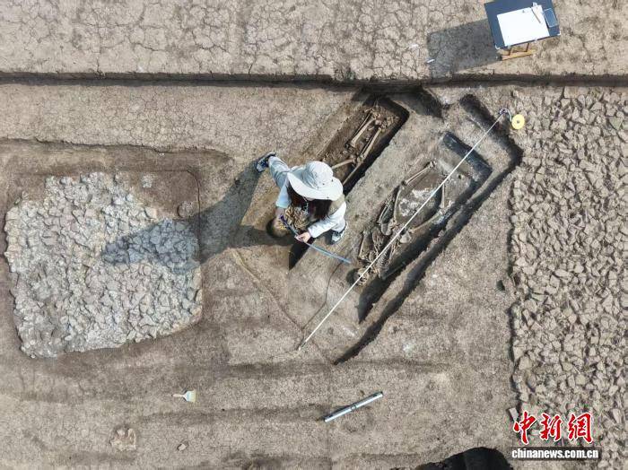 图为考古人员进行考古绘图。(天津市文化遗产保护中心供图)