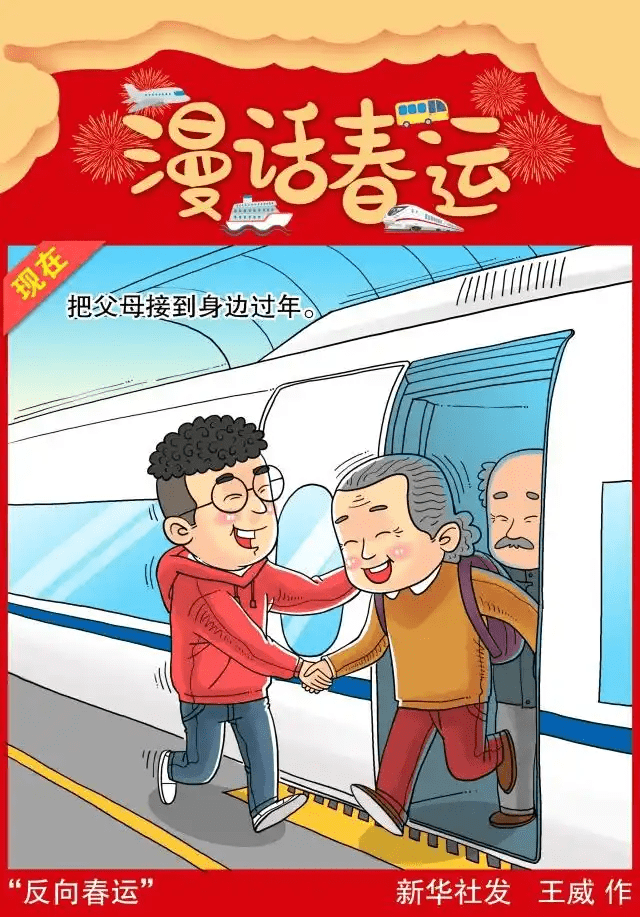 “今年不回家了,把爸妈接到北京过年!”近年来,越来越多的家庭选择“反向”过年,不少父母主动到孩子工作的城市团聚。“反向”过年既能让在大城市打拼的年轻人免去抢票麻烦和路程奔波,也能让父母体验到不同地方的年俗年味,同时给春节经济增添更多活力和精彩。从返乡过年到“反向过年”,改变的只是相聚的空间位置,不变的是团圆守候的亲情温暖。团圆的方向没有正反,只要和家人在一起,在哪过年、怎么过年都能感受到幸福的滋味。