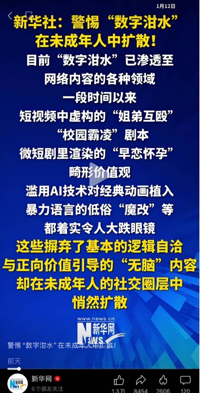 所谓“数字泔水”,指的就是网络上的低俗无脑内容,像是虚构姐弟互殴、校园霸凌、早恋怀孕,利用AI技术魔改经典动画等等。