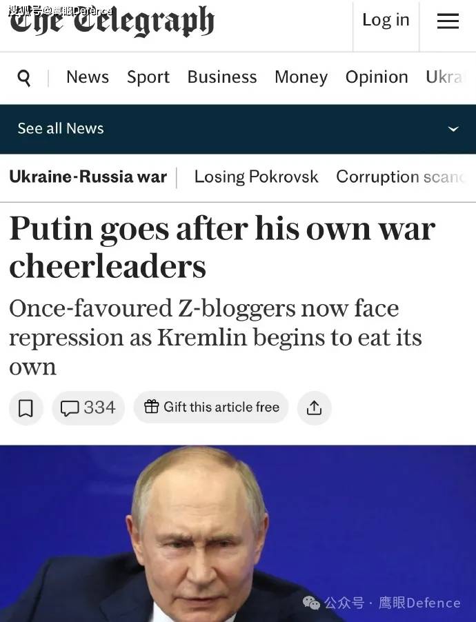 去年,《每日电讯报》就报道称,克宫正在打击自己的“战争啦啦队”,库尔斯克州长顾问、支持“特别军事行动”的Z博主、功勋士兵罗曼·阿列欣因炫耀自己的新跑车和名表而被贴上了“外国代理人”的名单,这表明即便是忠于克里姆林宫的批评了也不再安全了。
