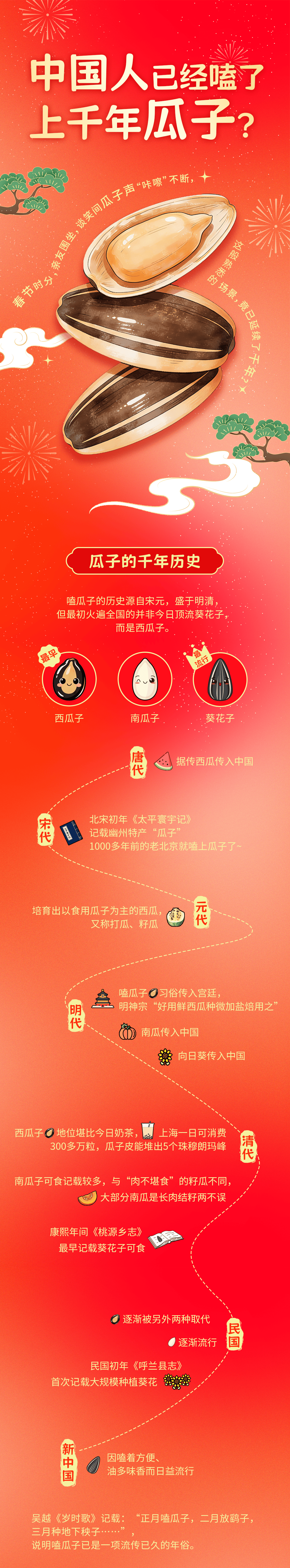 从千年前的宋人闲趣,到今日春节的团圆家宴,这一枚小小的瓜子,早已超越了零嘴的范畴,成为节庆中不可或缺的情感载体。