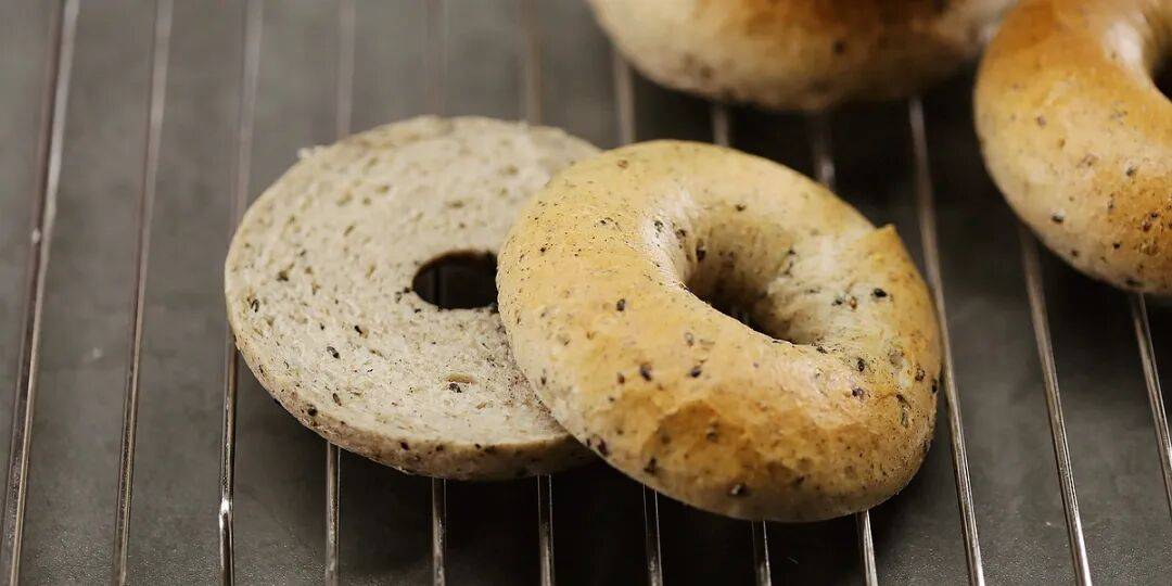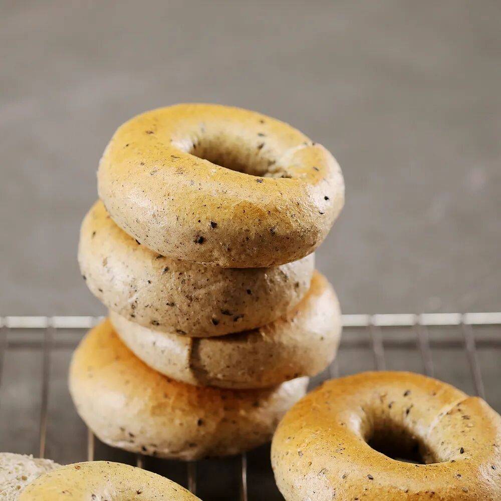 来一款揉面和发酵都很简单的全麦黑芝麻贝果。它低脂低糖,还可以做成三明治当健身餐,快来试试吧。