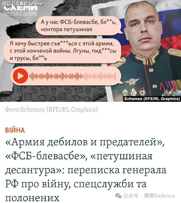 罗曼·德穆尔奇耶夫少将用各种脏话称呼空降兵和海军陆战队,俄联邦安全局“只是监视谁偷了什么”,格鲁乌指挥官是“老鼠”,坦言克宫炫耀的那些战略武器没用,“波塞冬”核动力鱼雷还没完成,“我只有一架Orlan无人机”。
