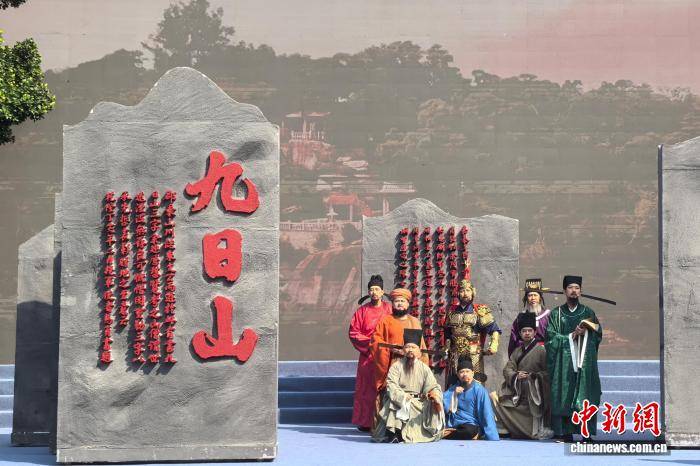 2月22日,《风祈千年》音诗画主题舞台剧在福建南安九日山风景区上演。图为历史人物跨时空对话。中新网记者 孙虹 摄