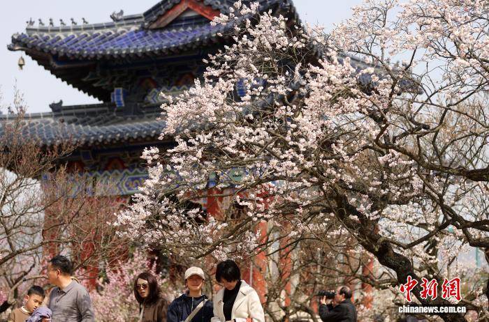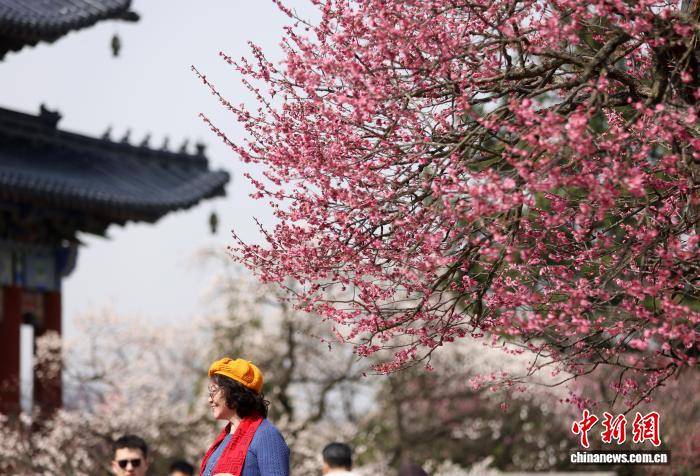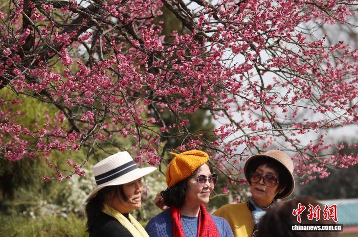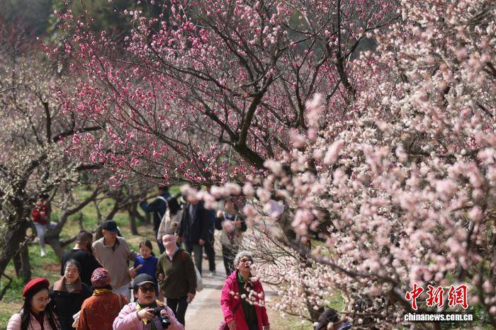 2月22日,江苏南京,市民和游客欣赏盛开的梅花。中新社记者 泱波 摄