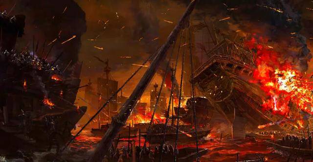 傍晚时分,江面突然刮起大风,多艘战舰被铁链缠住。张武抓住机会,顺流向下游位置释放火船,一口气就烧毁多艘楼船。随后又以矢石猛击,居高临下射杀落单士兵。荆南军的船只因乱流扰动,只能在水面原地打转,以至于焚溺死者甚众,几万人顷刻间就化为乌有。
