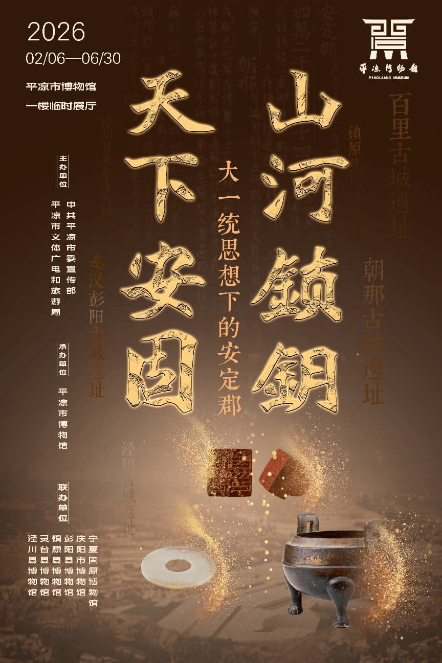 值此丙午马年新春,平凉市博物馆联合宁夏固原博物馆、庆阳市博物馆及彭阳、镇原、灵台、泾川四县博物馆,共同策划推出《山河锁钥·天下安固——大一统思想下的安定郡》特展,萃集馆藏青铜器、陶器、玉器、铁器等文物270余件,其中珍贵文物达140余件。展览依托最新考古发现及学术研究成果,紧扣“铸牢中华民族共同体意识”这一时代命题,以全面、立体、生动的叙事体系,为观众呈现“大一统”背景下安定郡政治、经济、交通、文化等多维历史图景,揭示中华文明“多元一体”格局中区域文化的多样性及互动交流,助力观众深刻理解中华民族统一进程中文明的嬗变与融合。