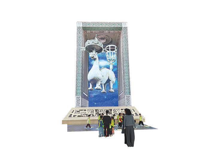 随州市博物馆大厅中央的裸眼3D大屏幕。