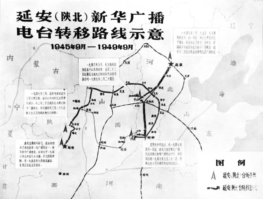 随着革命进程的推进,党的广播宣传力量不断壮大,除延安(陕北)新华广播台继续面向全国宣传外,我党在解放区陆续建立起一批新的广播电台。延安新华广播从窑洞中艰难起步到具有全国中央台的性质,地方新闻广播从无到有逐步拓展至大江南北,不仅在战时发挥了宣传政策、动员群众、瓦解敌军的重要作用,也为新中国广播事业的组织体系、技术支撑和人才培养奠定了坚实基础。