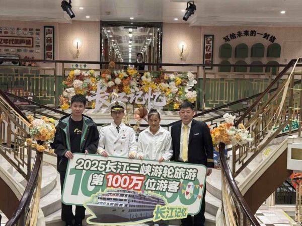 “长江记忆”游轮迎来2025年长江三峡游轮旅游的第100万位客人。黄金游轮供图
