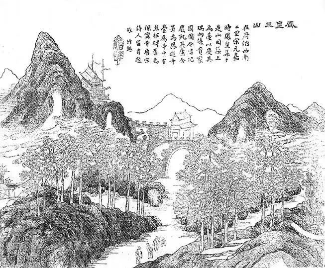 长干里客《金陵四十八景》“凤凰台三山”。《江山胜迹》插图