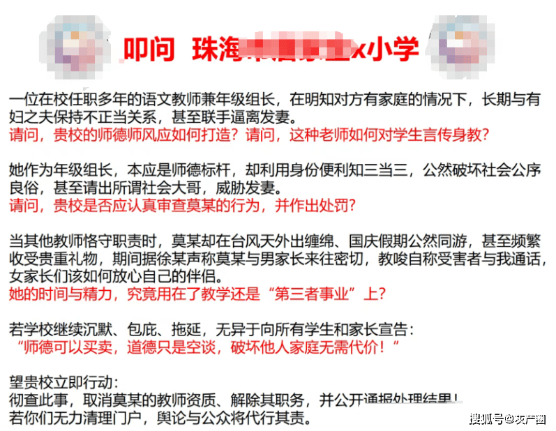 目前,原配已向莫某所在学校及珠海市教育局提交实名举报,恳请彻查其行为并撤销教师资格,同时要求公开处理结果。