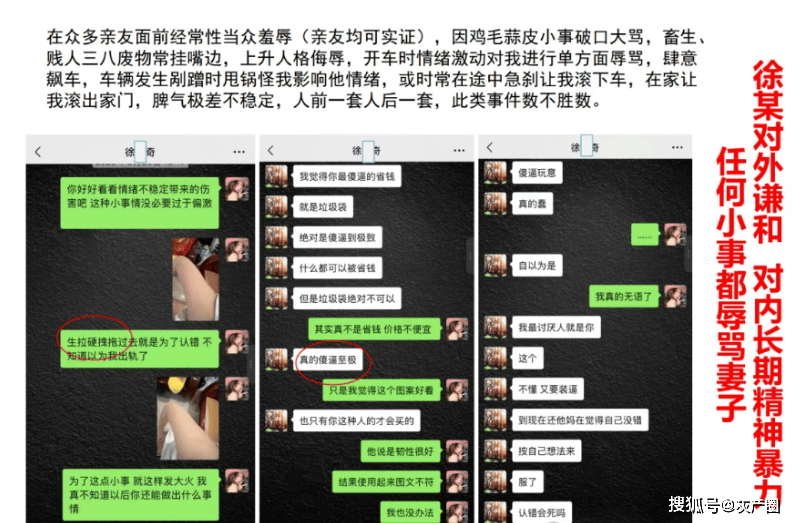 而在这份ppt里,除了徐某奇的出轨,还有他婚内的“精神暴力”,婚后,他就像变了个人一样,以前的谦卑温驯变成了刻薄冷血。