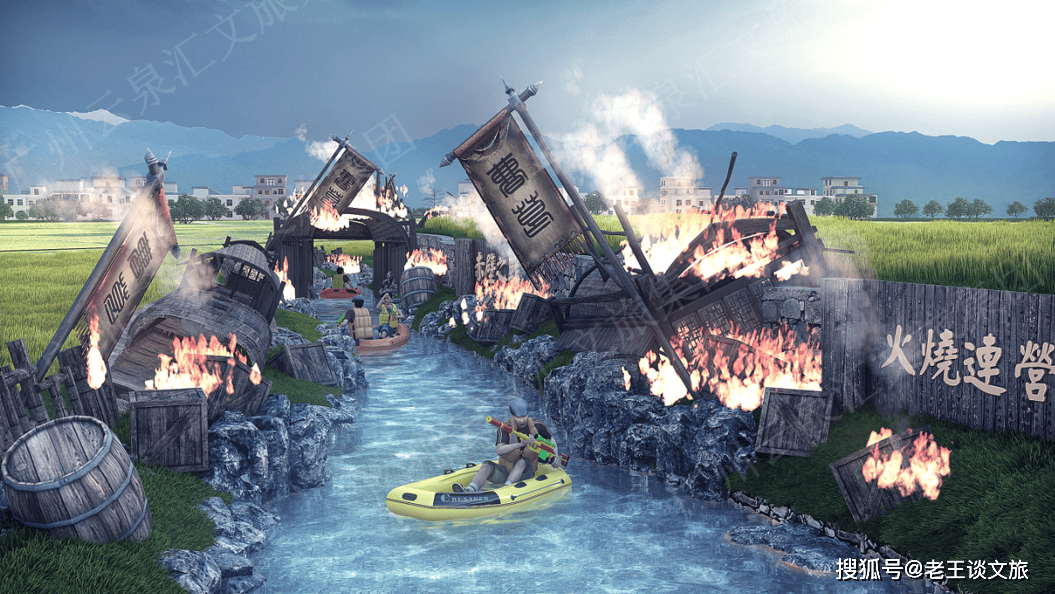 ▶ 漂流规划设计项目典范:云泉汇所设计的桐庐三国风云漂流河道规划设计项目首创了沉浸式水上剧本互动体验漂流。依托项目地得天独厚的自然资源与三国文化底蕴,云泉汇创新性地以"高空玻璃漂+自然惊险漂+古村人文漂"构建三重视界,让游客在1.5小时、220米落差的极致漂流中,穿越赤壁古战场,亲身感受三国英雄的豪迈气概。该项目也获得了众多游客的喜爱