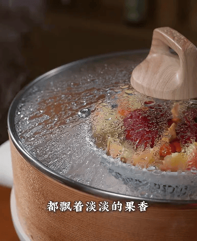蒸汽袅袅中,黄芪的有效成分缓缓渗入苹果的每一寸果肉,苹果的酸甜则中和了黄芪的微苦。