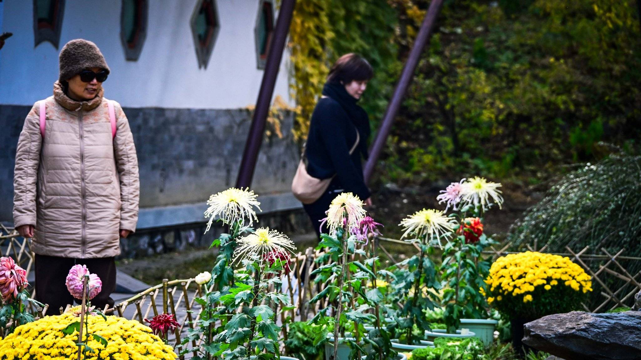 由于今年气温变化较为平缓,彩叶整体变色时间略晚于往年。目前,全园彩叶树种已全部变色,综合落叶率约65%,其中黄栌落叶率约为50%。在老松林、静翠湖、碧云寺、香山寺等景区,黄栌、银杏等仍色彩鲜明;位于山谷地带的“梅谷”景区,因气温较低、湿度适宜,鸡爪槭、银杏等目前仍处于最佳观赏期。