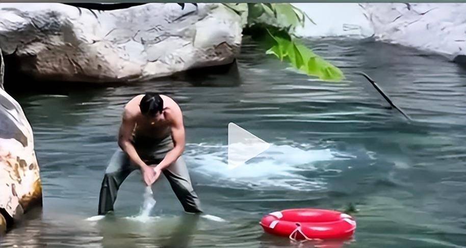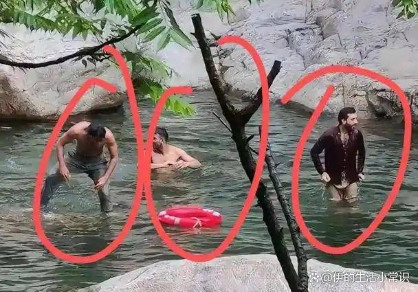 清澈的庐山泉水潭里,肥皂泡沫随风散开,三名赤膊男子正用力搓洗身体,岸边“禁止下水”的英文标识牌成为被无视的摆设。