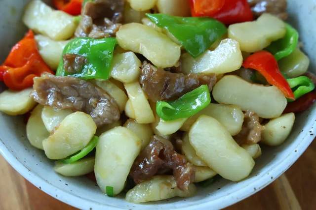 6、正是吃荸荠的季节,冬天多吃这种白色的食物,荸荠正当季,这样炒一炒脆嫩爽口,跟牛肉非常搭配。荸荠高钾低热量,再加入牛肉的加持,蛋白质也是锦上添花,强烈推荐你们去试试!