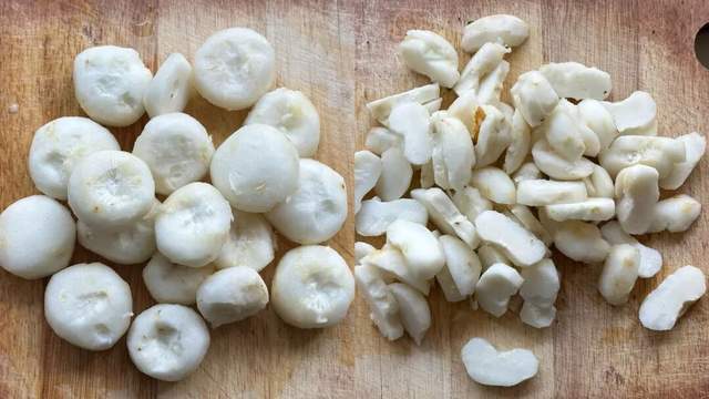 1、准备适量的荸荠,去皮之后切成薄片备用;