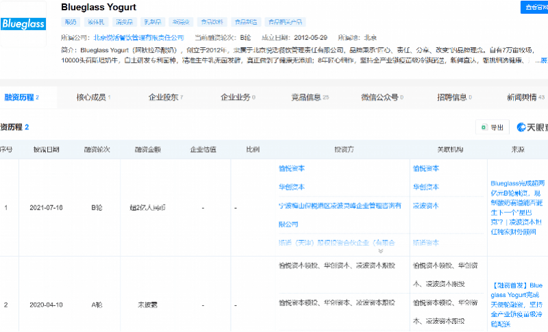 然而,降价背后是Blueglass发展面临的困境。公开资料显示,其母公司北京悦活餐饮管理有限责任公司在2020年、2021年完成A、B轮融资后,再未获得资本进驻。尤其在2023年现制酸奶赛道备受资本青睐时,Blueglass却悄无声息。