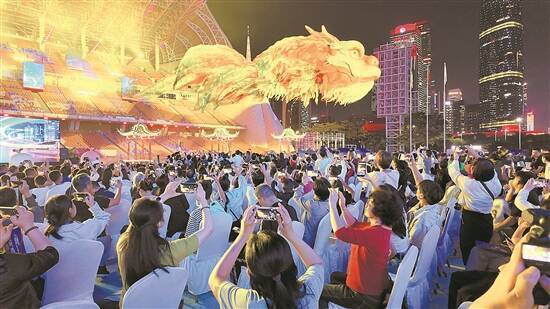 | 这届灯光节深度融入湾区人文气质,将十五运会的“鳌鱼”等元素纳入创作 |