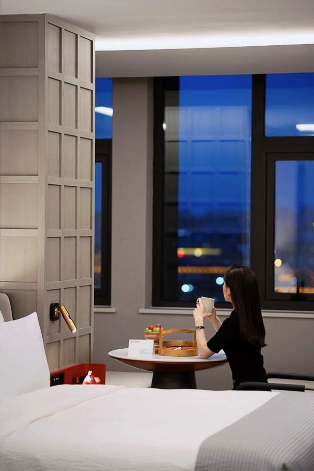 这家坐落于北京中轴线前门核心区的酒店,以独特的文化解读与现代转译,打造出一座可沉浸体验的"当代书院"。其公共空间摒弃了传统中式元素的简单堆砌,转而通过材质与空间叙事构建文化容器;客房设计则从京城古建筑与传统色彩中汲取灵感,以大象灰为主色调,搭配温润木地板与仿古铜金属饰面,通过明黄色家具点缀,营造出兼具皇家气韵与现代舒适的居停场景。
