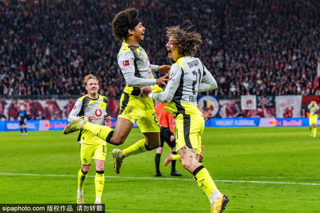 全场比赛结束,RB莱比锡2-2多特蒙德。